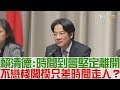 12.07Fri (上集)賴清德:時間到會堅定離開 不戀棧閣揆只差時間走人?沈富雄 高嘉瑜 江啓臣 12.06Thu (上集)蔡英文首度發表迴廊談話 “最會溝通政府”主帥親征?李俊毅 唐湘龍 賴士葆