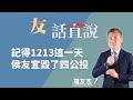 12.13Mon 【千秋萬事】台灣地圖惹禍?!唐鳳民主峰會畫面離奇「被消失」台灣穩當邦交國剰3個? 12.09Thu 【千秋萬事】彭文正英國提告三官司!將傳喚關鍵英國前議員加告張惇涵傳喚陳水扁!論文