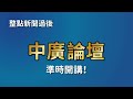 12.09Sat 【cti talk網路論壇】美國不排除兩岸和平統一 台灣學者深度解讀 台灣人下一 12.08Fri 【千秋萬事】選戰倒數36天!向心跨海提告 Linbay好油交保年度代表字「缺」!